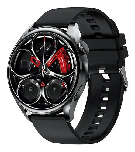El dispositivo es un reloj inteligente de diseño circular con una pantalla táctil de alta definición de 1.28 pulgadas (aprox. 3.25 cm). Su estructura combina una caja metálica resistente con una correa de silicona deportiva de 22 mm, diseñada para un uso cómodo y duradero.