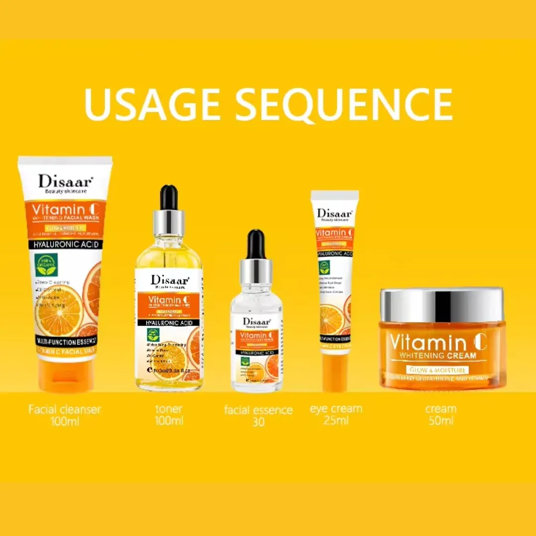 El set facial Disaar con Vitamina C está formulado con vitamina C y ácido hialurónico, ayudando a iluminar la piel, mejorar el tono apagado y aportar una hidratación profunda. Su uso diario contribuye a una piel más suave, fresca y radiante.
